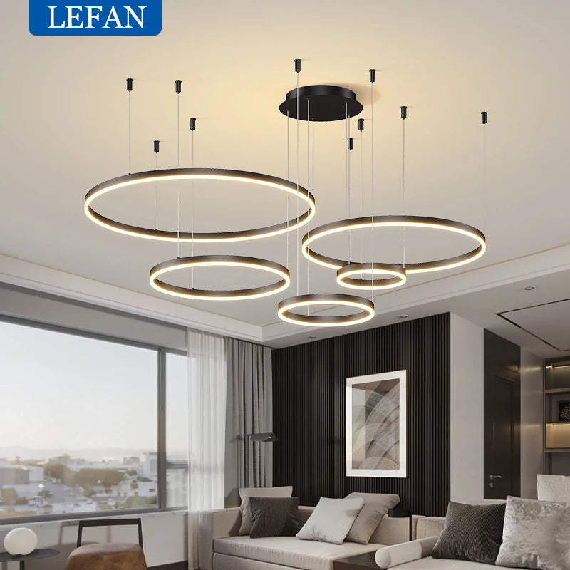 Modern Led Chandelier Brushed Rings Home Lighting Ceiling Mounted For Living Room Bedroom Hanging Lamp Gold&Coffee Color Lights